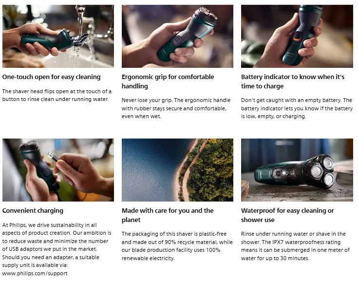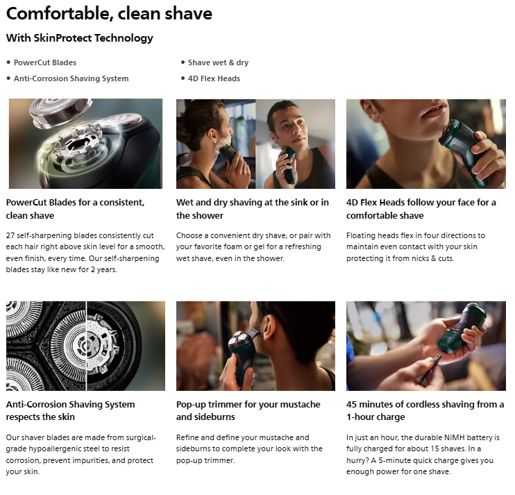 Philips Shaver 3000X Series Wet & Dry Electric Shaver gives you a comfortable, clean shave and good value. 27 self-sharpening PowerCut Blades, wet and dry use, and a pop-up trimmer make the shaver easy to use and always reliable.