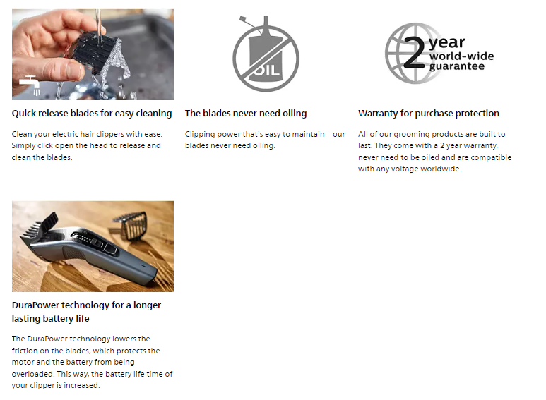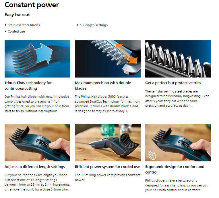 *Faster clipping without clogging - tested on cut hair length up to 19mm, compared to predecessor comb**Cuts 2 times faster - versus its Philips predecessor