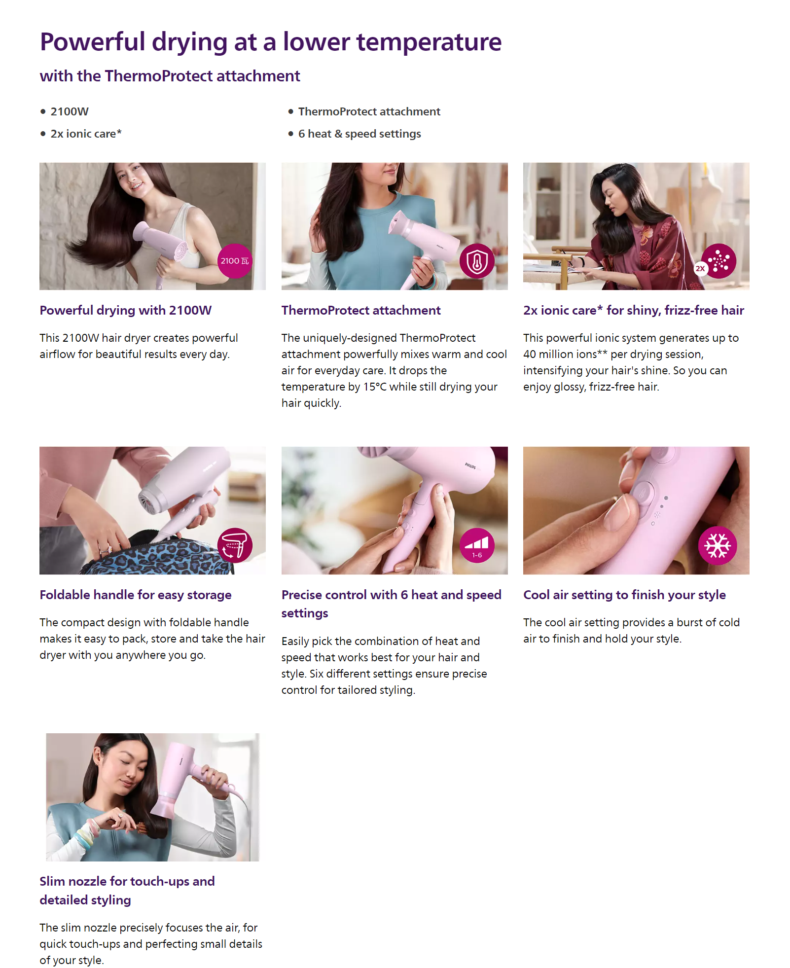 The uniquely-designed ThermoProtect attachement powerfully mixes warm and cool air for everyday care.