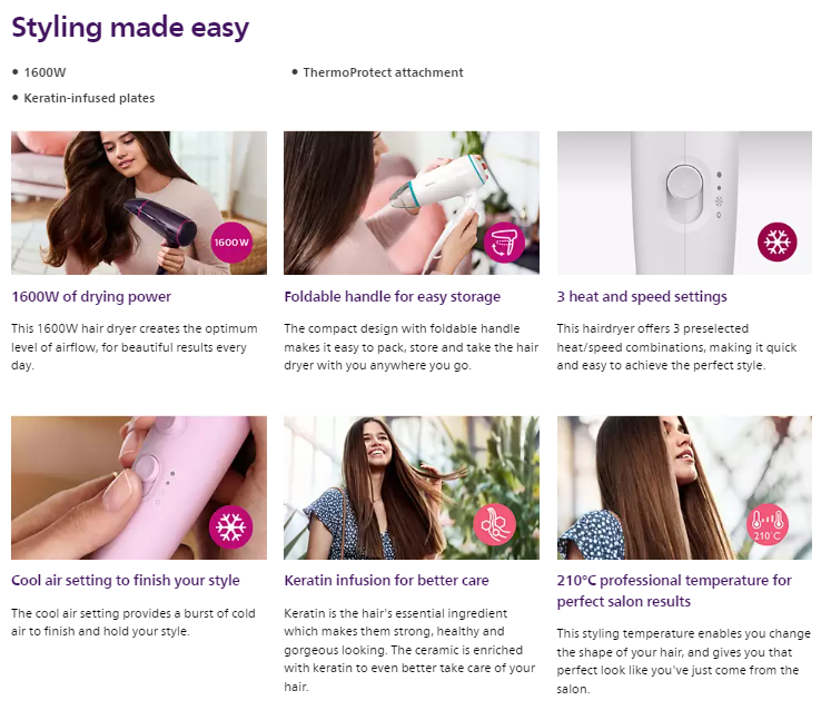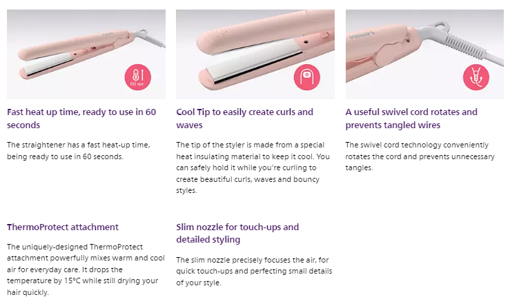The uniquely-designed ThermoProtect attachment powerfully mixes warm and cool air for everyday care.