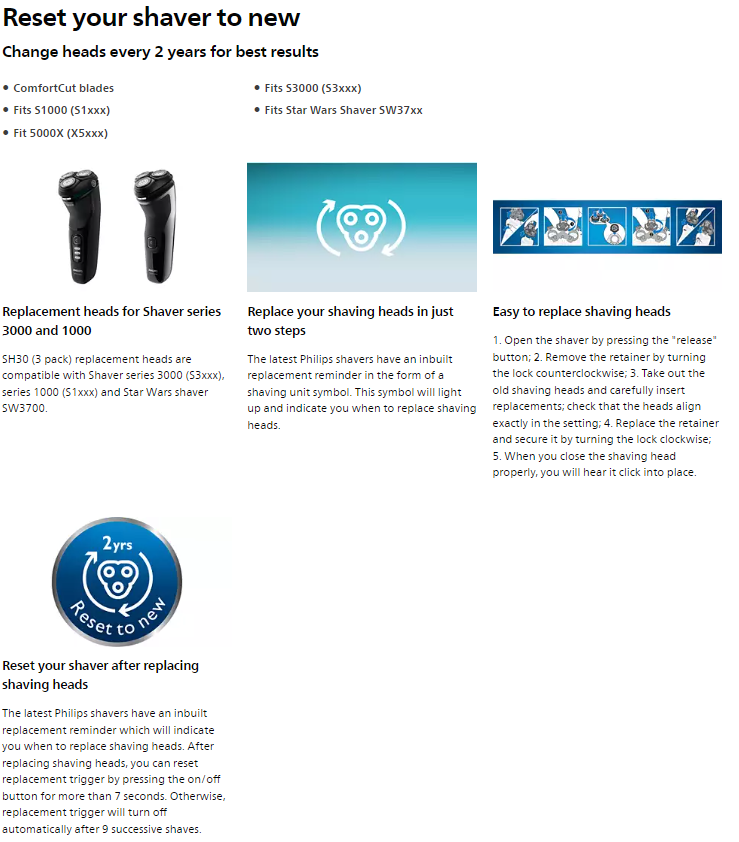 Within two years your shaver heads cut 9 million hairs on your face. Replace the shaver heads and get back to 100% performance. Compatible with the Series 3000 and Series 1000 Shaver.