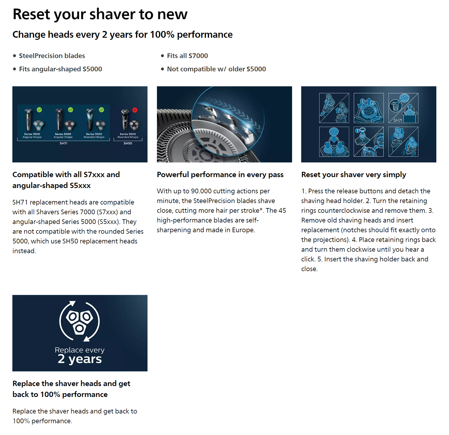 Within two years, your shaver heads cut 9 million hairs on your face. Replace the shaver heads and get back to 100% performance.