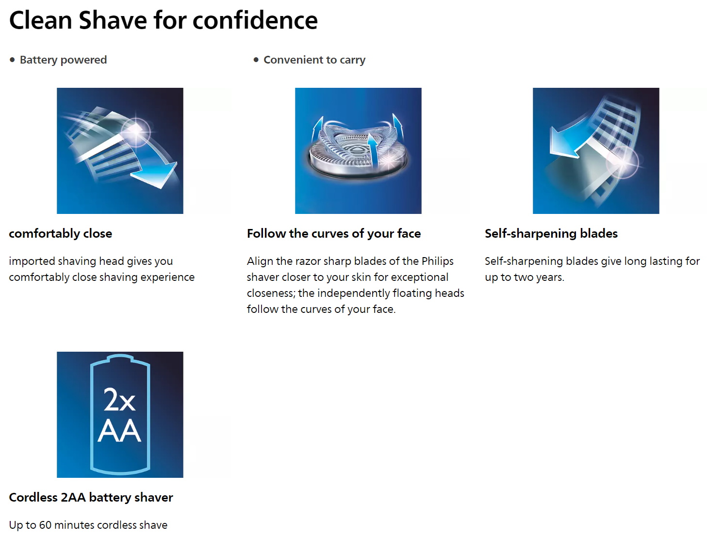 The Philips PQ206 electric shaver combines the close cut shaving system with independently floating heads. You can be confident you will look your best every day.
