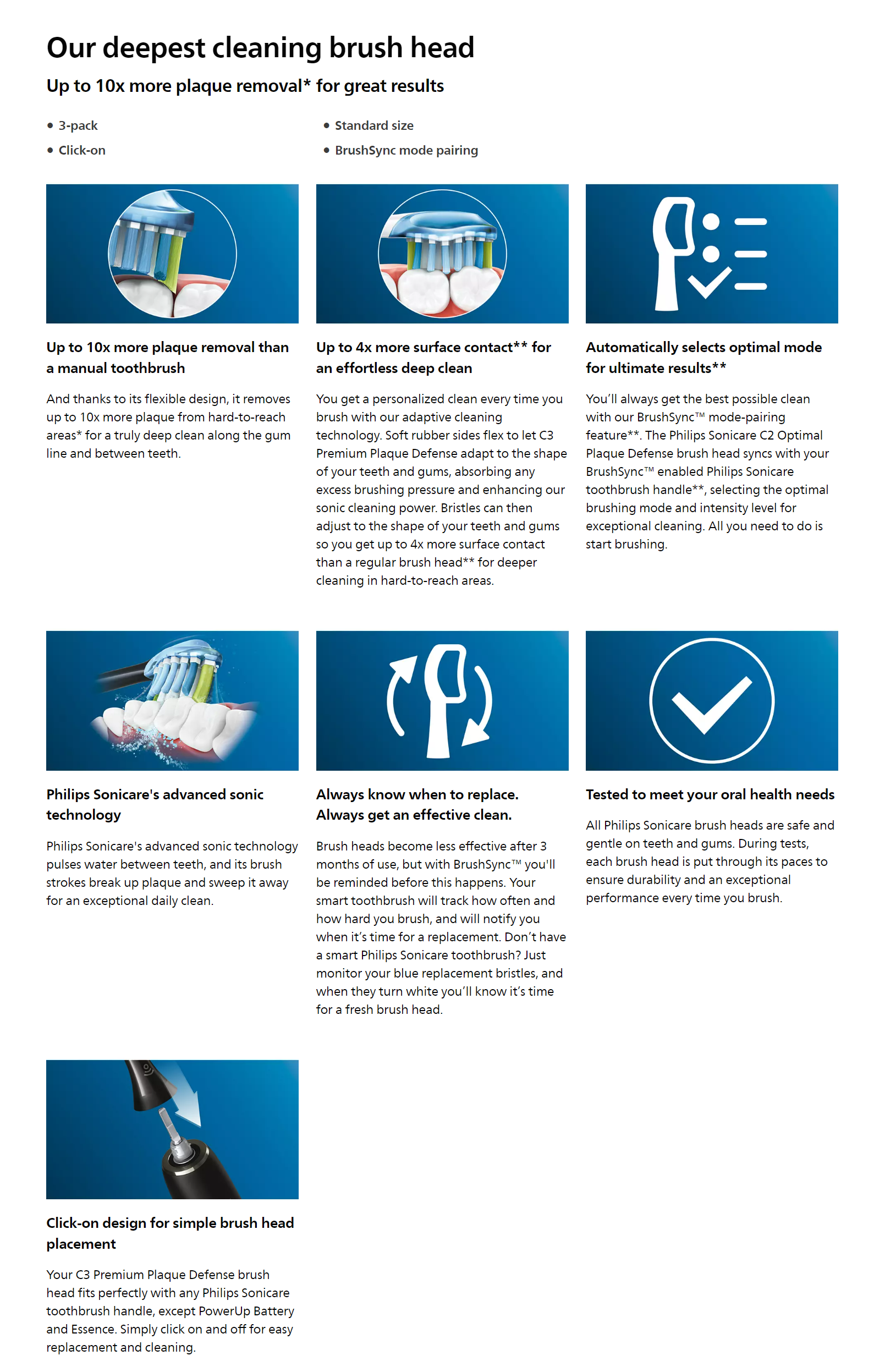 Get a clean as unique as your smile. Our C3 Premium Plaque Defense adapts to the contours of your teeth and gums thanks to soft, flexing sides that give you 4x more surface contact than a regular brush head** for a comfortable, deep clean.