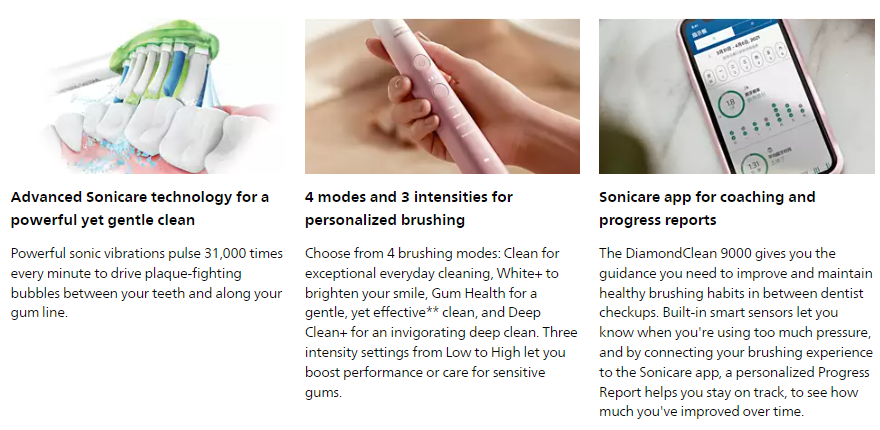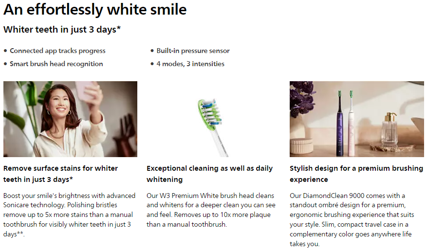 Start every day in style with advanced Sonicare technology for whiter teeth and oral health. Gentle on gums with a connected app for coaching and tracking. Choose from 4 modes and 3 intensities for a personalized brushing experience.