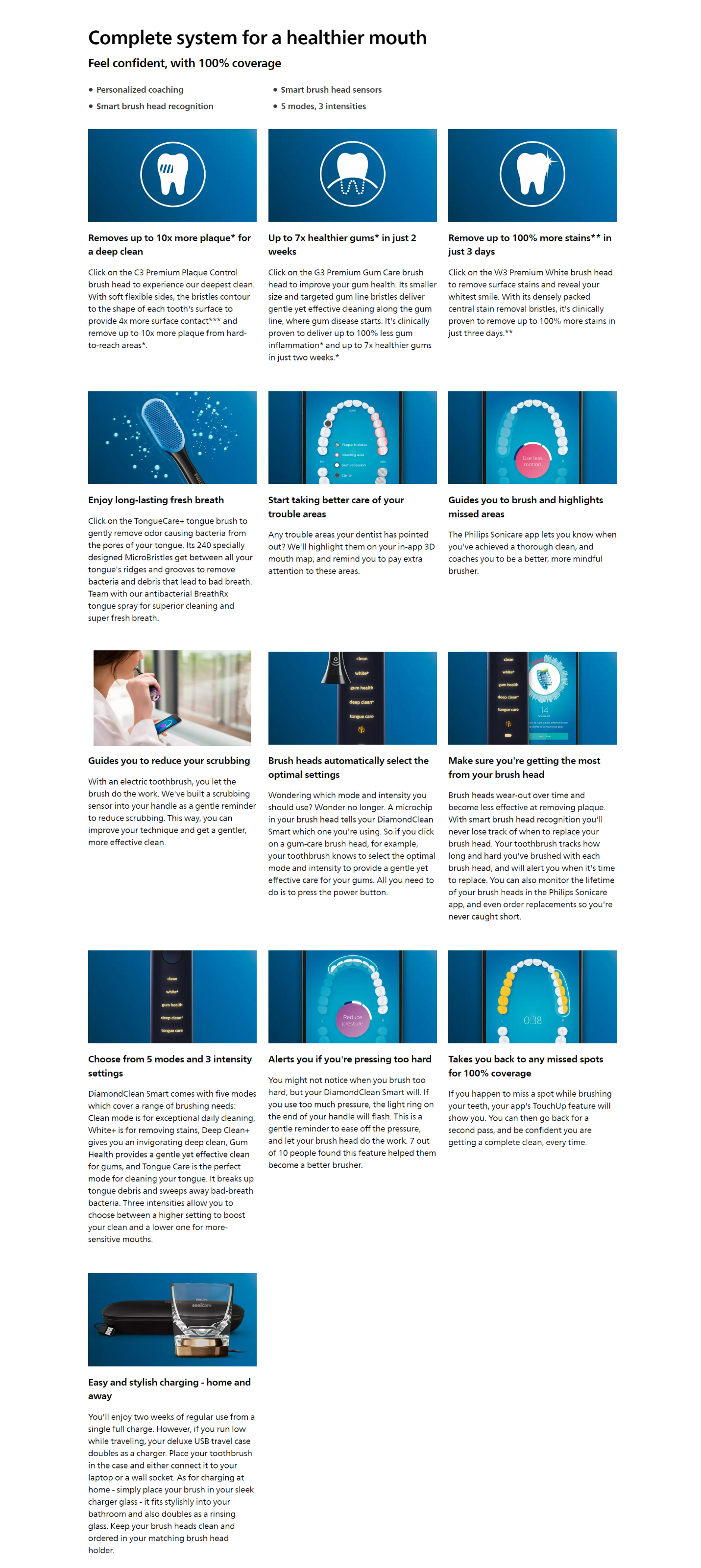 Get the ultimate clean with DiamondClean Smart. Eliminate guesswork with real time feedback and personalized coaching for superior teeth, gum, whitening & fresh breath. It’s more than just a toothbrush - it’s a complete oral care solution.