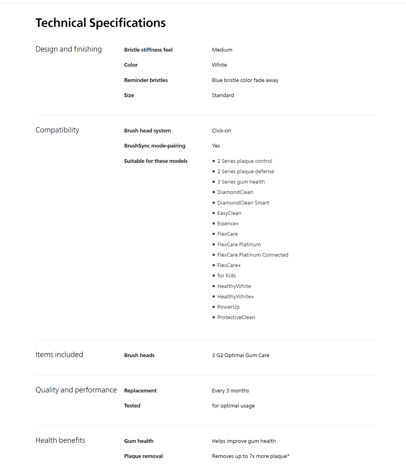 The Philips Sonicare G2 Optimal Gum Care toothbrush head (formerly ProResults gum health) is perfect for those who want a gentle yet optimal plaque removal experience. The outer bristles gently remove plaque from the gumline.