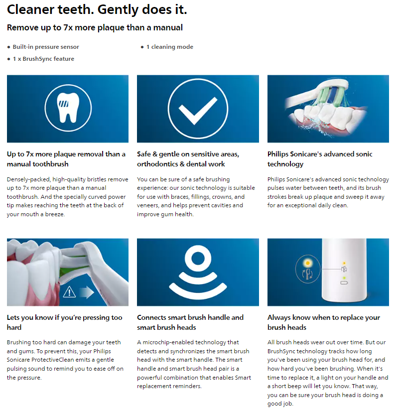 Feel the difference of a gentle clean with our Pressure Sensor while removing up to 7x more plaque than a manual toothbrush.