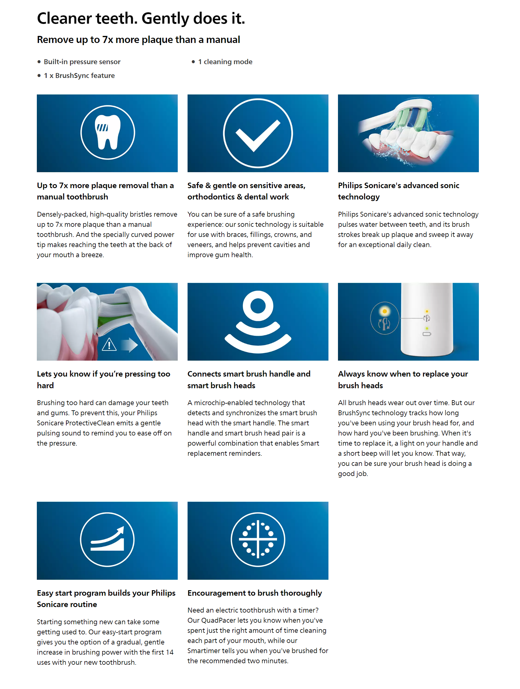 Feel the difference of a gentle clean with our Pressure Sensor while removing up to 7x more plaque than a manual toothbrush.