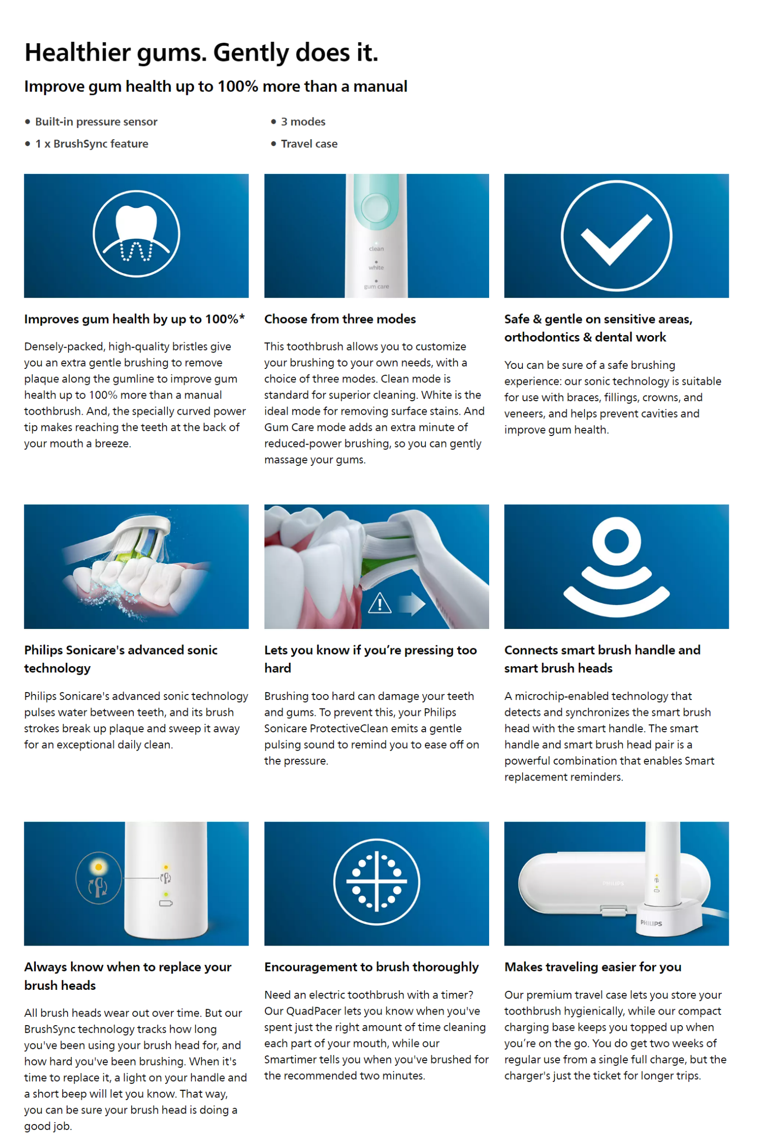 Feel the difference of a gentle clean with our Pressure Sensor while improving your gum health up to 100% more vs a manual toothbrush.