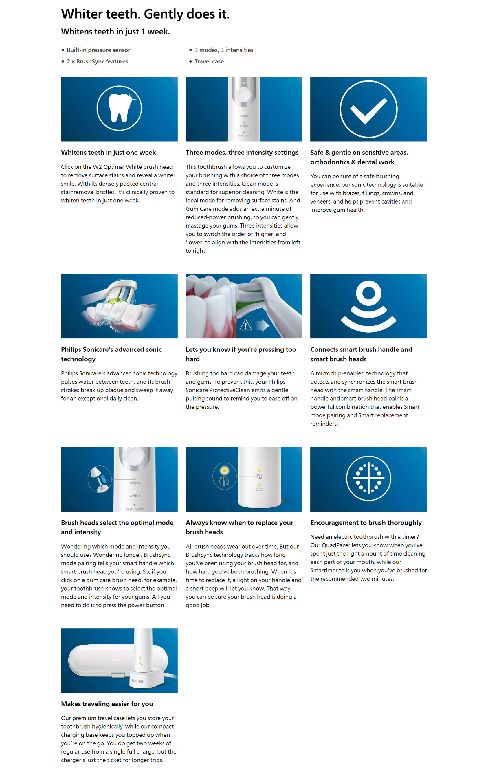 Feel the difference of a gentle clean with our Pressure Sensor while whitening your teeth in 1 week.