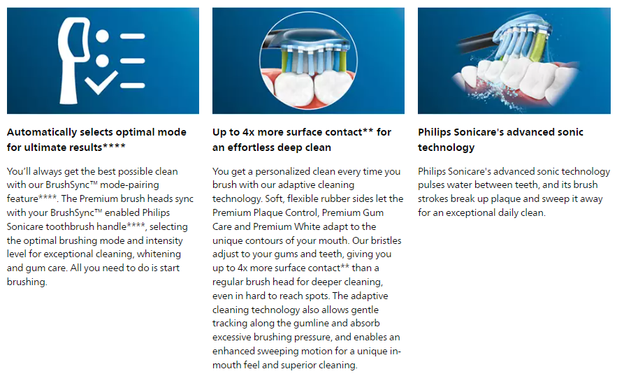 *Removes up to 7x more plaque vs. a manual toothbrush**than a DiamondClean brush head***in Gum Care Mode vs a manual toothbrush; measured by GBI****BrushSync™ mode-pairing is only compatible with Philips Sonicare BrushSync™ enabled toothbrush handles