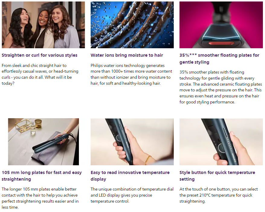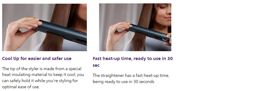 *Same styling result achieved with lower heat exposure at 180°C vs HP8361 at 210°C**vs HP8361***vs HP8361