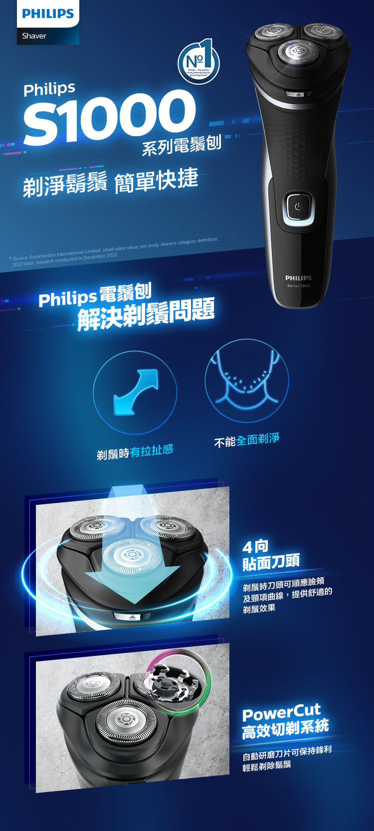 經濟實惠的新款 Philips 1000 系列電鬚刨為您帶來不費吹灰之力的流暢剃鬚體驗,同時提升皮膚保護效果。優質自動研磨刀片結合可從 3 個方向移動的貼面刀頭,讓您享受剃鬚的樂趣。