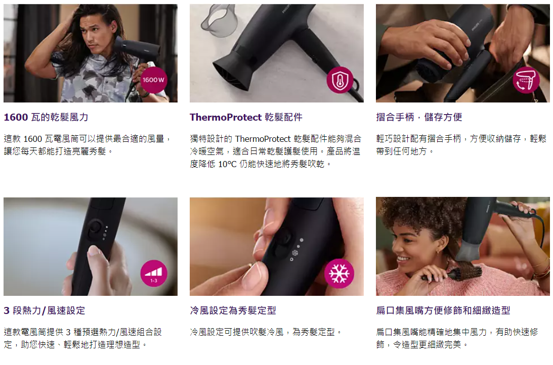 獨特設計的 ThermoProtect 乾髮配件能夠混合冷暖空氣,適合日常乾髮護髮使用。