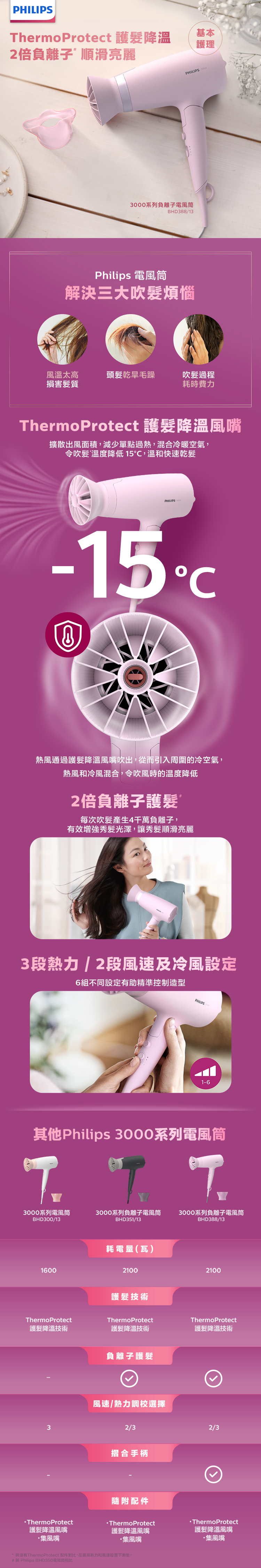 獨特設計的 ThermoProtect 乾髮配件能夠混合冷暖空氣,適合日常乾髮護髮使用。