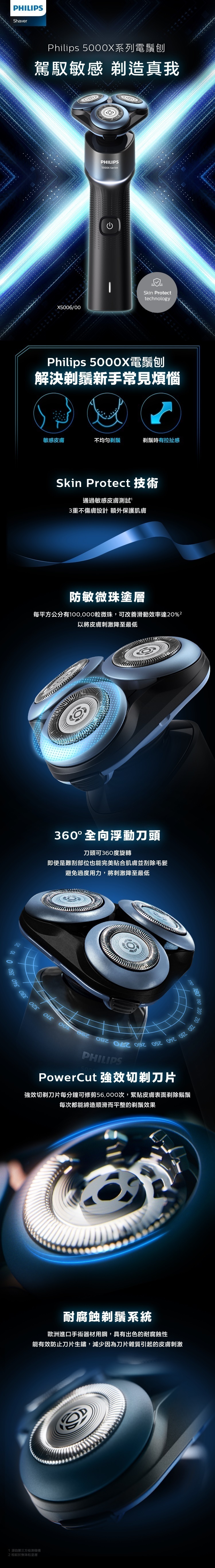 盡量減少皮膚刺激,讓您每天看來和感覺都處於最佳狀態。採用皮膚保護技術的 Philips 5000X 系列,旨在為您提供貼面剃鬚體驗和額外肌膚保護。